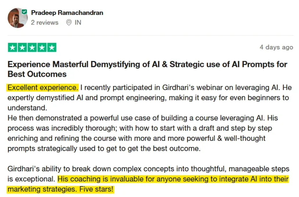 Why this matters to you: Girdhari doesn't just teach theory. He uses these exact AI strategies in his own agency every day. When he shows you how to get clients, it's because he's actually getting clients. When he talks about pricing, it's because he's actually charging those prices.
